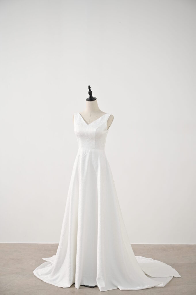 ウェディングドレス Émun エミュン Size 7号, 9号 表情ある生地のシンプルな1着 ノースリーブ・Vネックで無駄のないシンプルなライン歩く・立つ・振り返るすべてが絵になる一着 Meringue 前の記事 Clarisse 次の記事