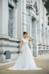 ウェディングドレス Lucy ルーシー Size 7号, 9号 バックスタイルが映えるパールボタン 胸元の刺繍も華やかながらバックスタイルにこだわったデザインが後ろ姿を一層印象的に見せますどこから見ても目を引く特別なドレス Elysia 前の記事 Hana 次の記事