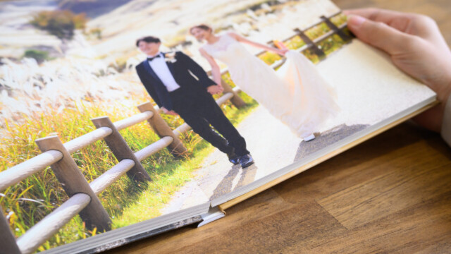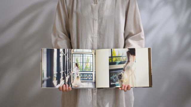 写真の良さを引き立たせるためにデザイナーが丁寧に組み上げた縦長タイプのアルバム。